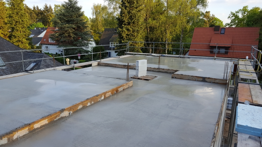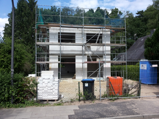 Jetzt müssen wir uns leider ein wenig gedulden. Die Fenster und Aluminium-Raffstores werden produziert. In den nächsten Tagen sind daher erst einmal keine weiteren Bauaktivitäten möglich, die Baustelle ruht. Der Einbau der Fensterelemente und Aufsatzrollläden ist in der 28. Kalenderwoche vorgesehen.